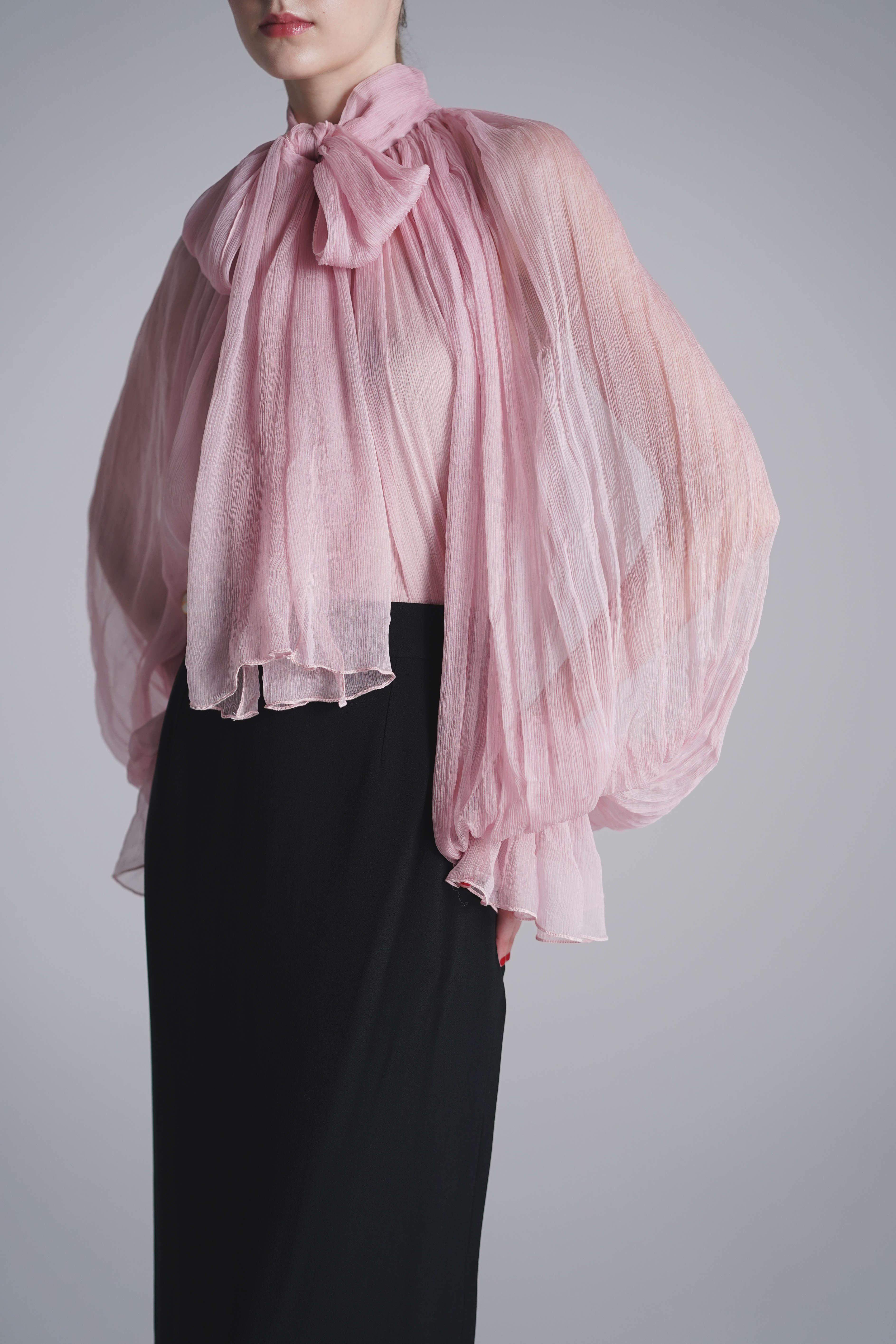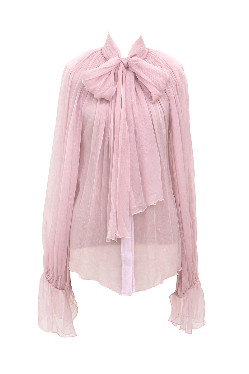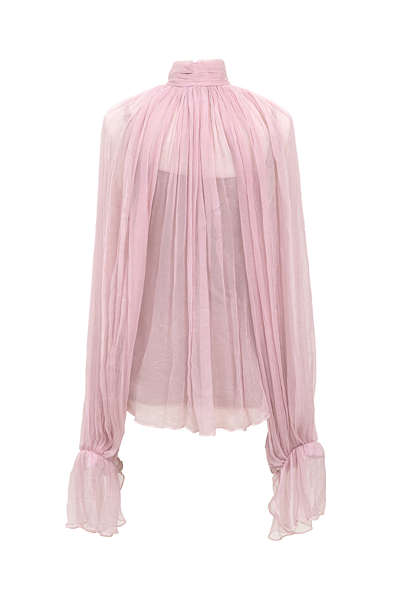 シースルーシルクブラウス-ピンク
