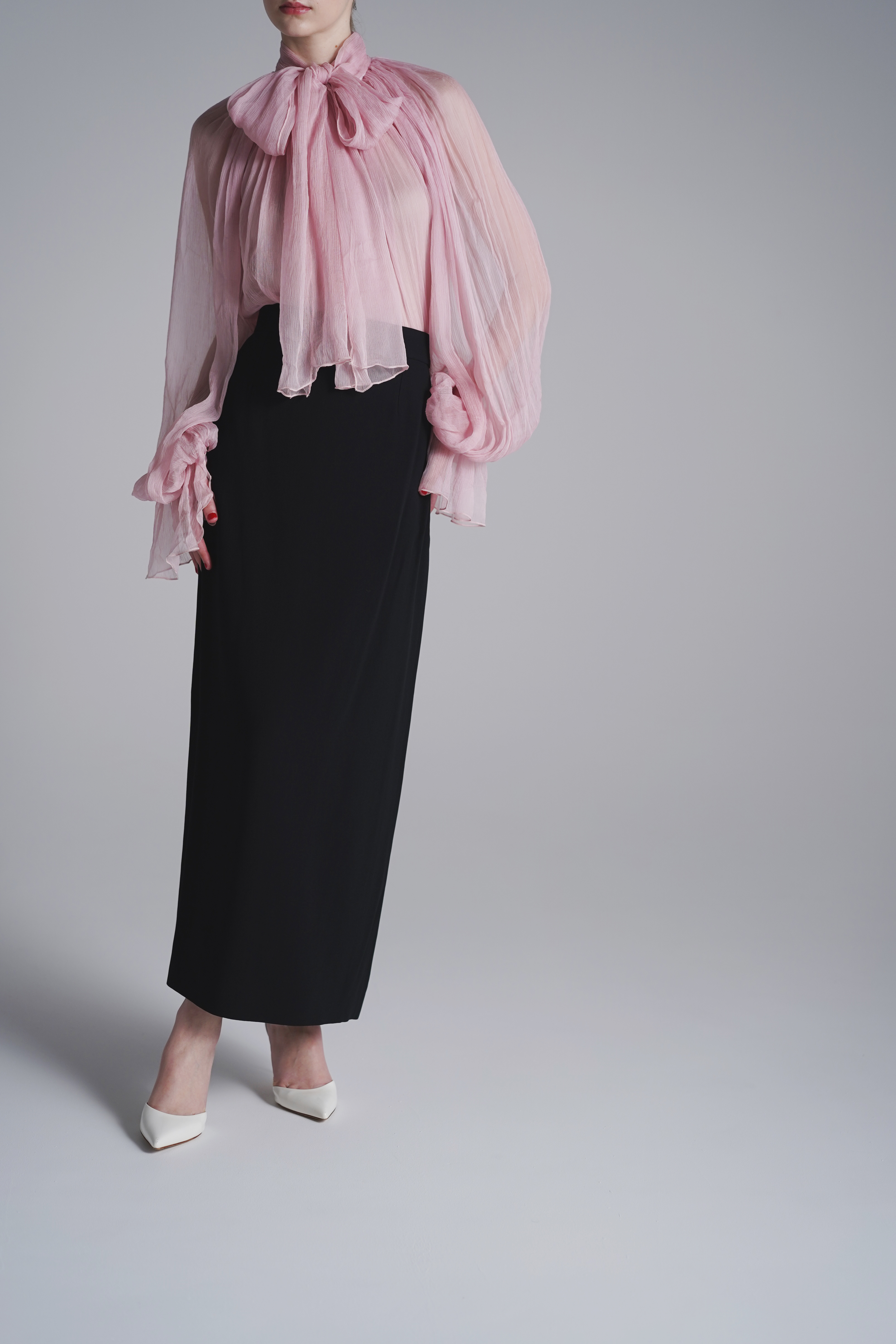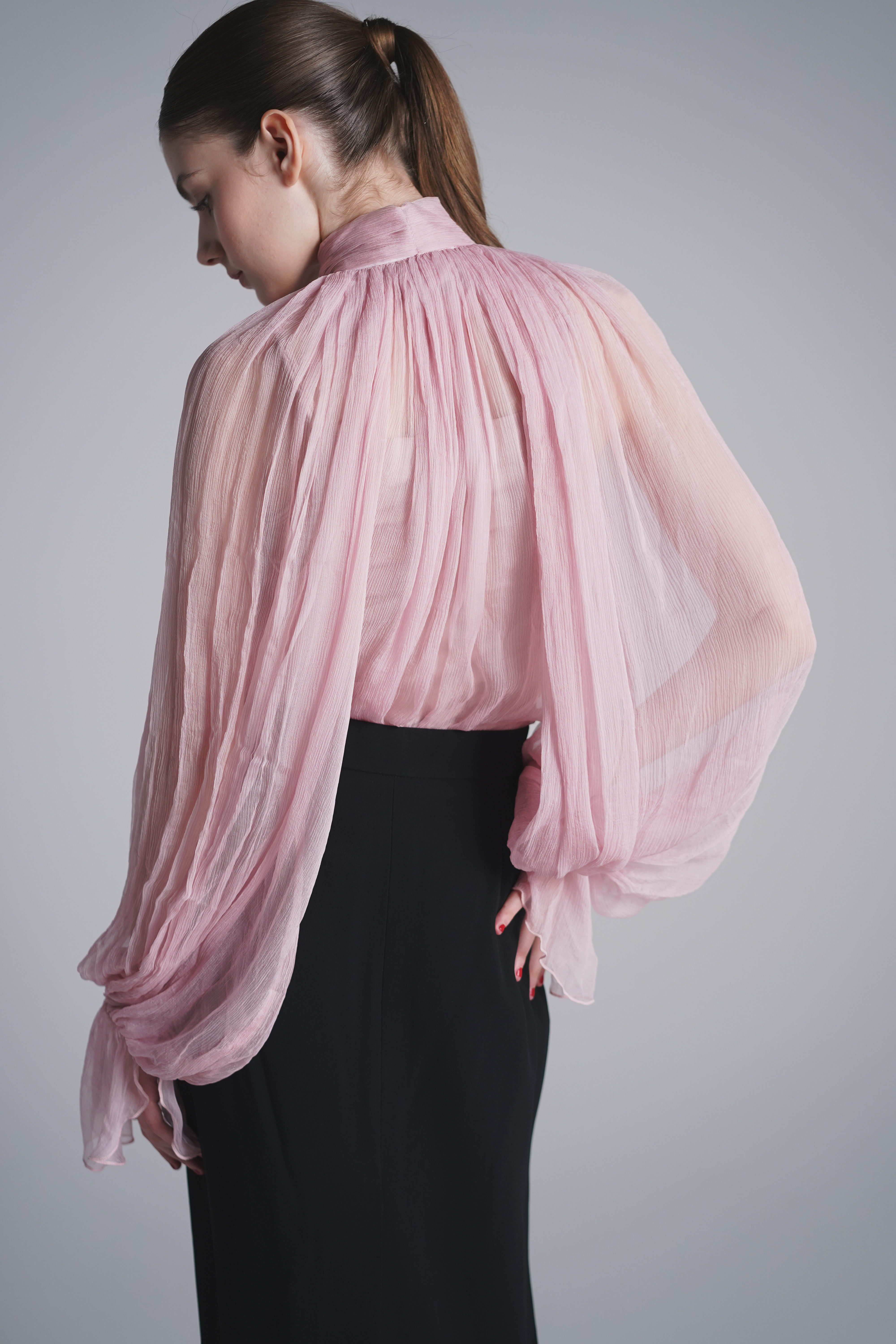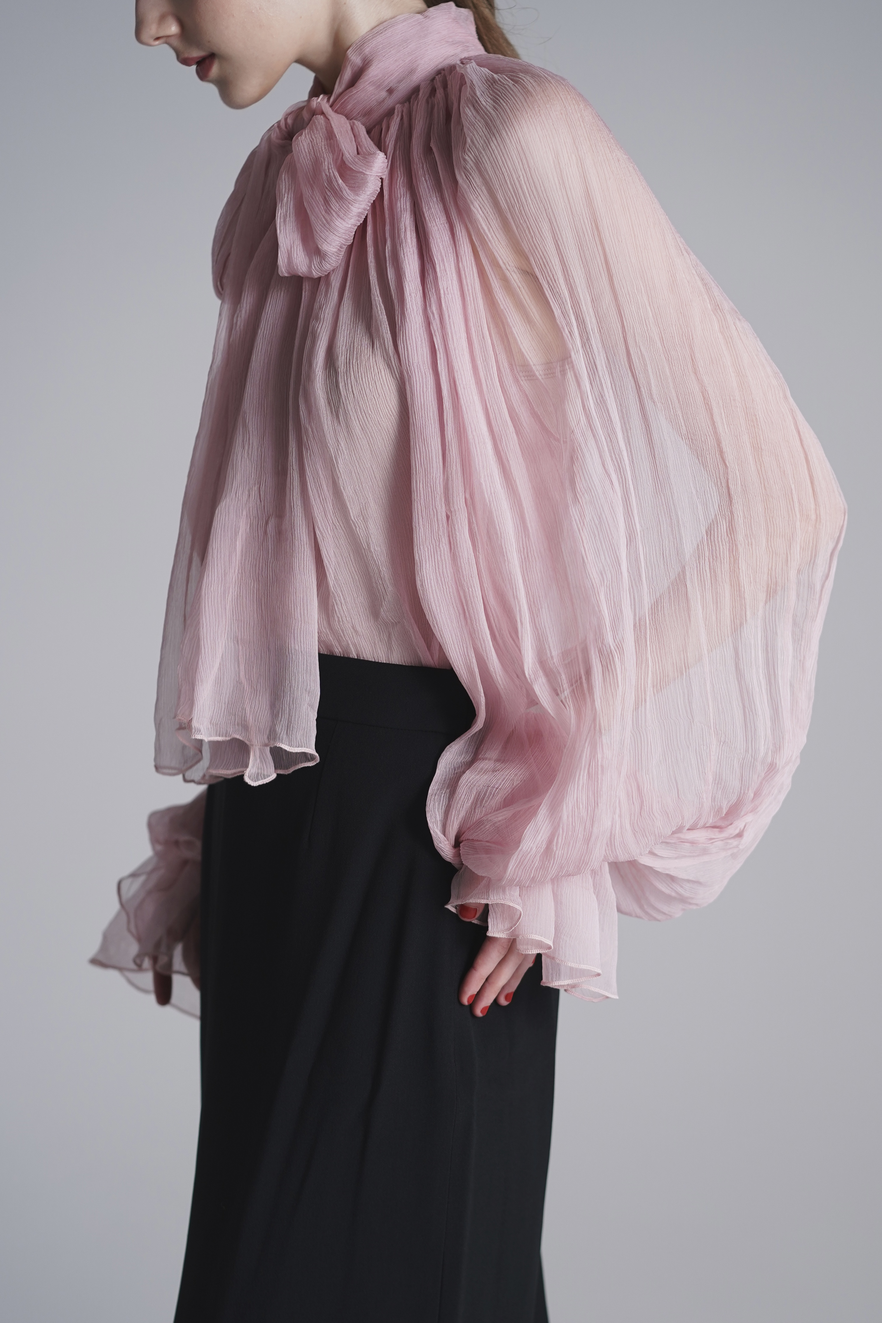 シースルーシルクブラウス-ピンク