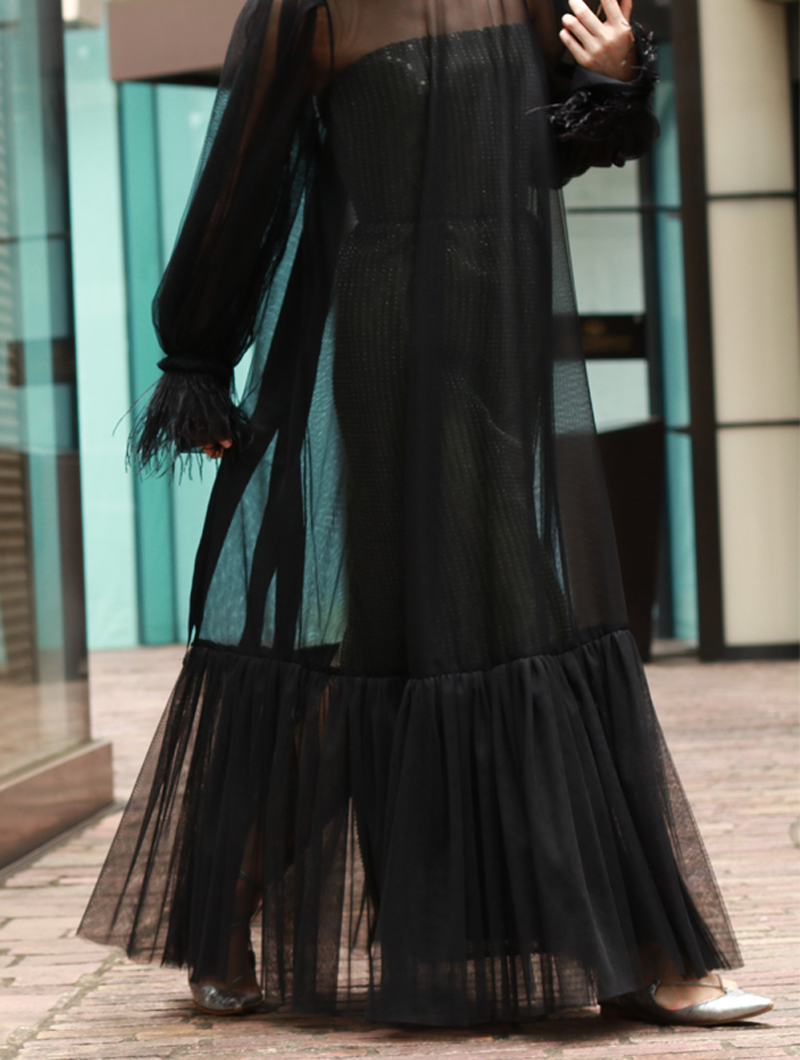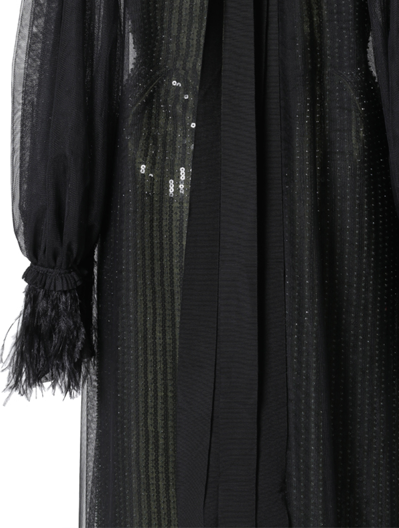 チュールガウン:肩幅32cm、衿高さ3.5cm、袖丈68cm、袖口幅11cm、着丈143cm、リボン全長(片方)145cm付属品 チュールガウン、 ずれ落ち防止用の固定ゴム - 素材