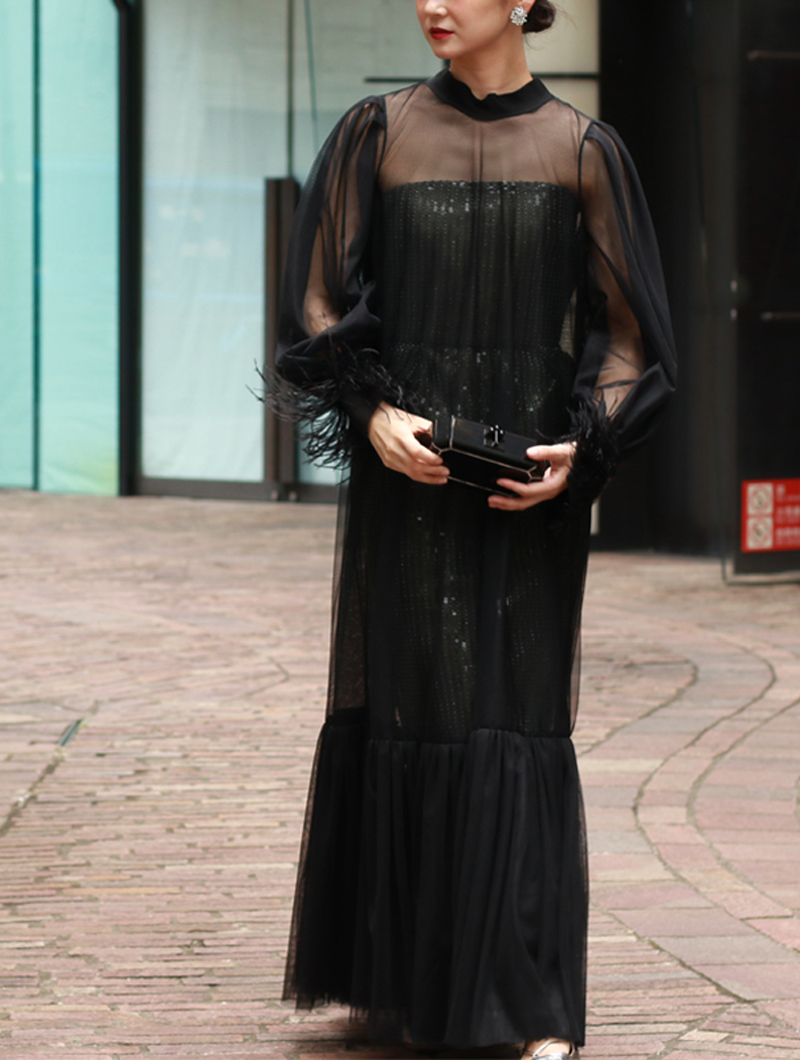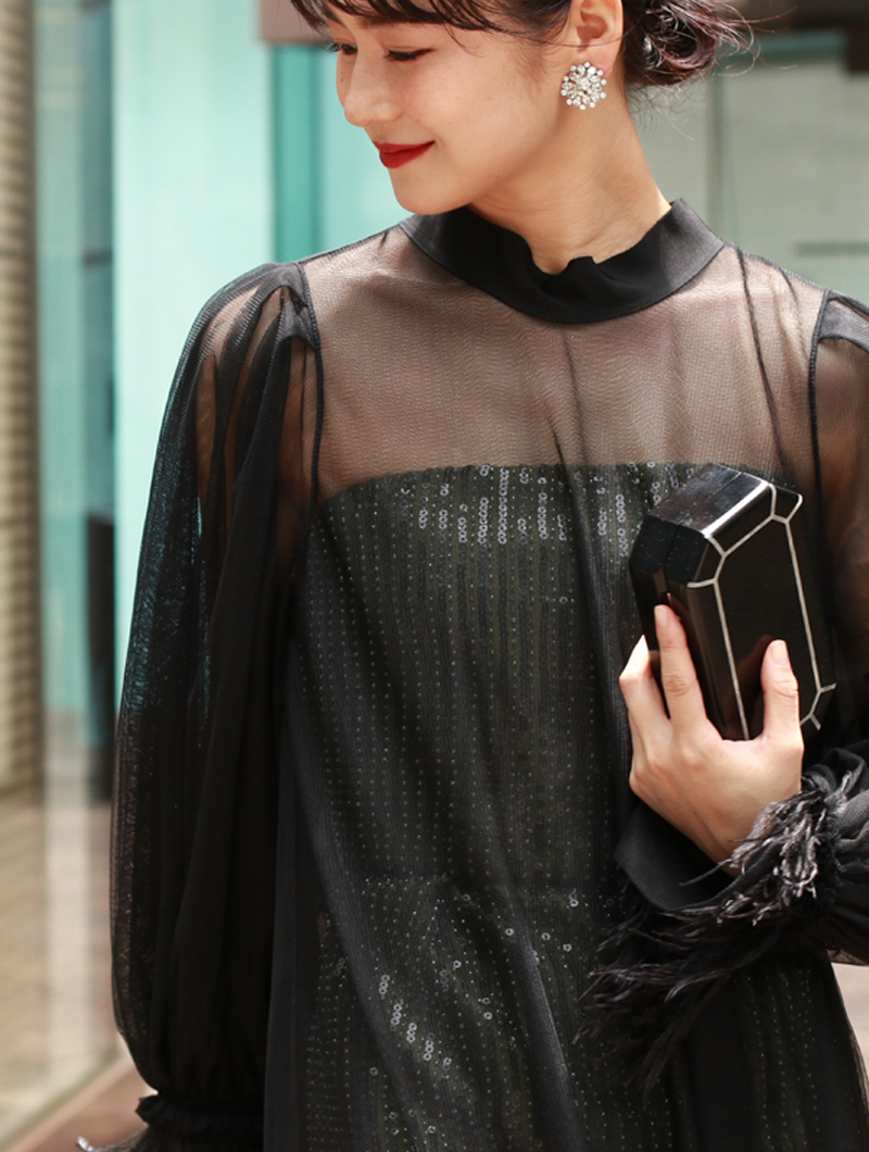 ※ドレスのウエスト周りのスパンコールが欠損している部分がございます。 - 着用アイテム