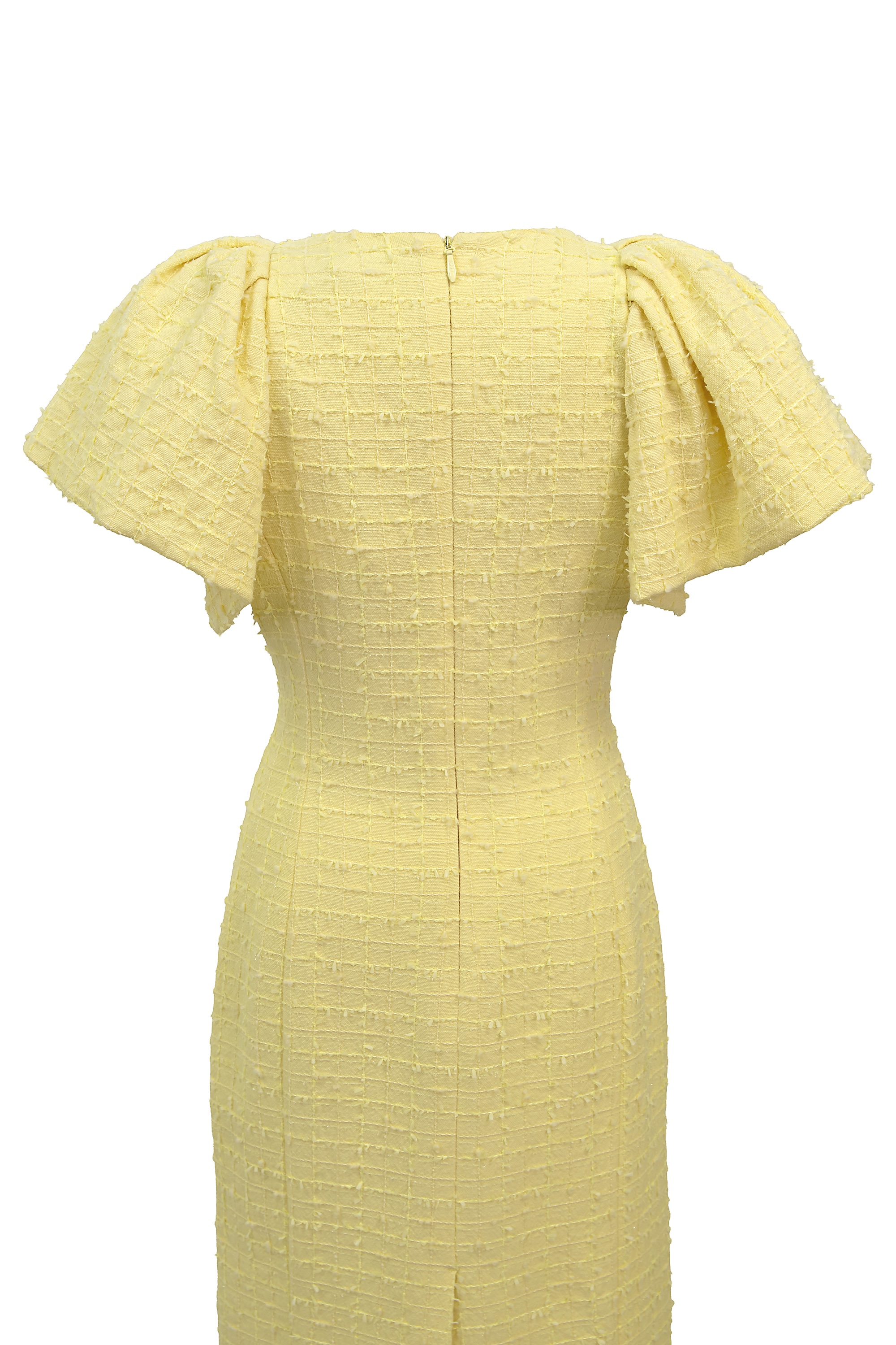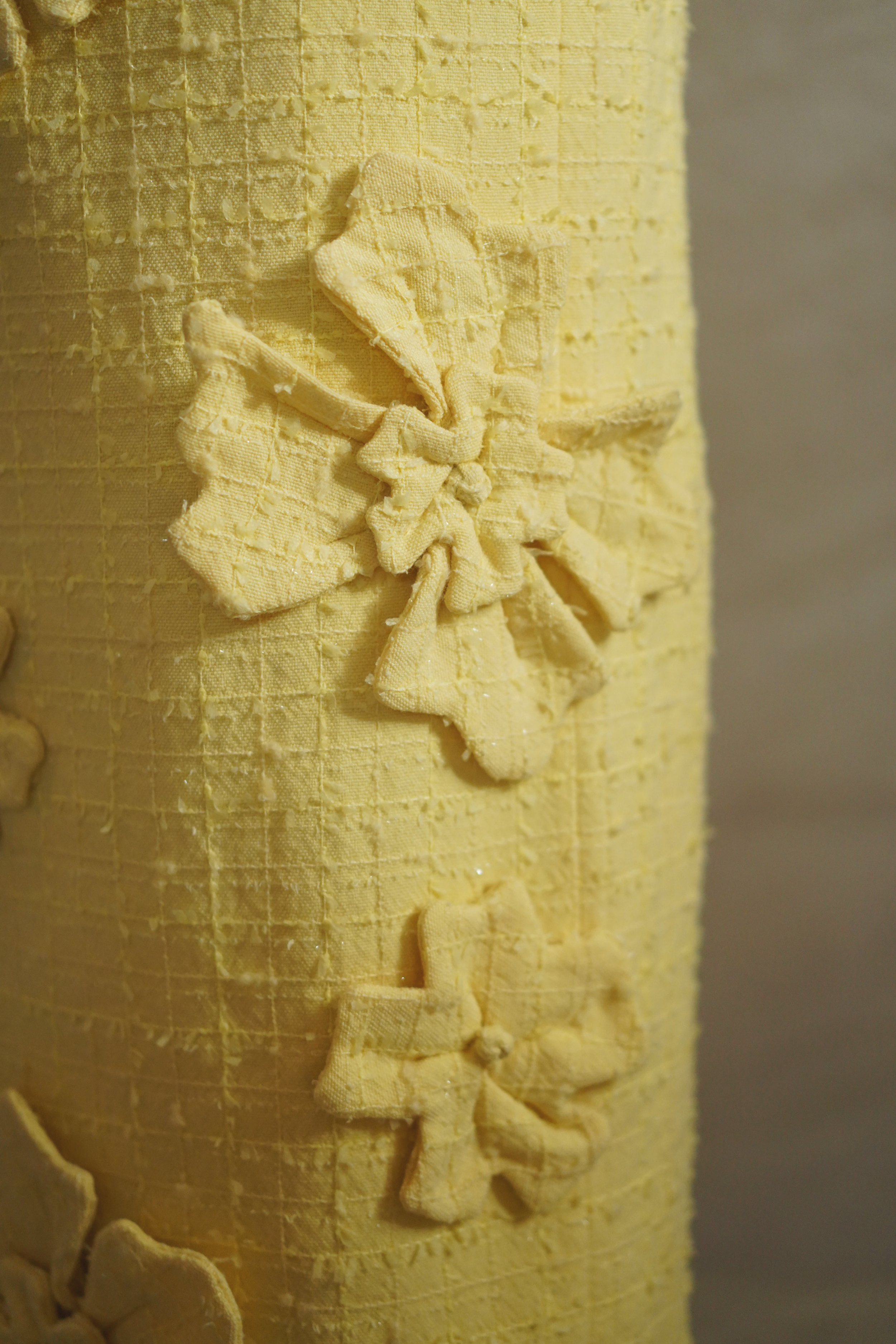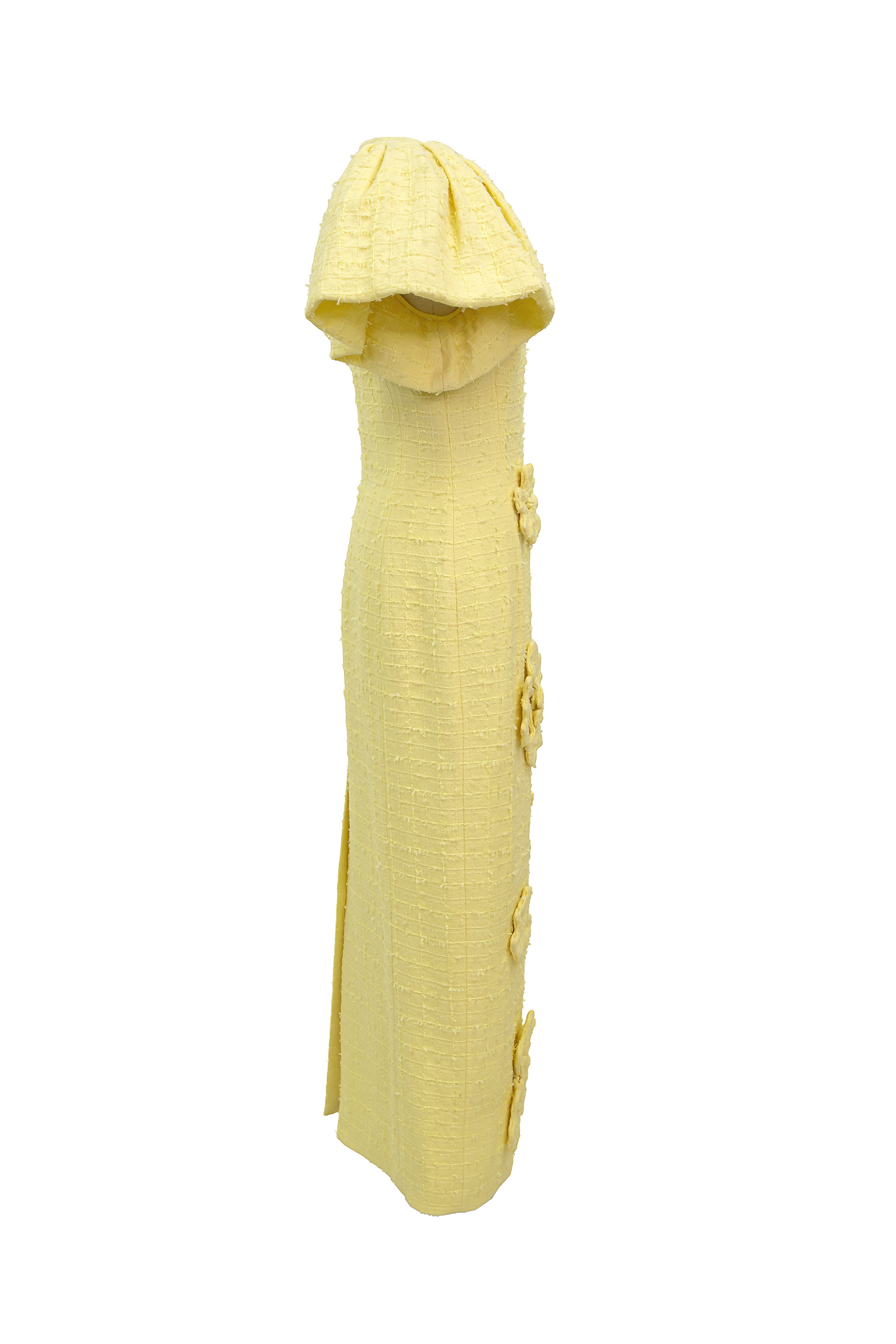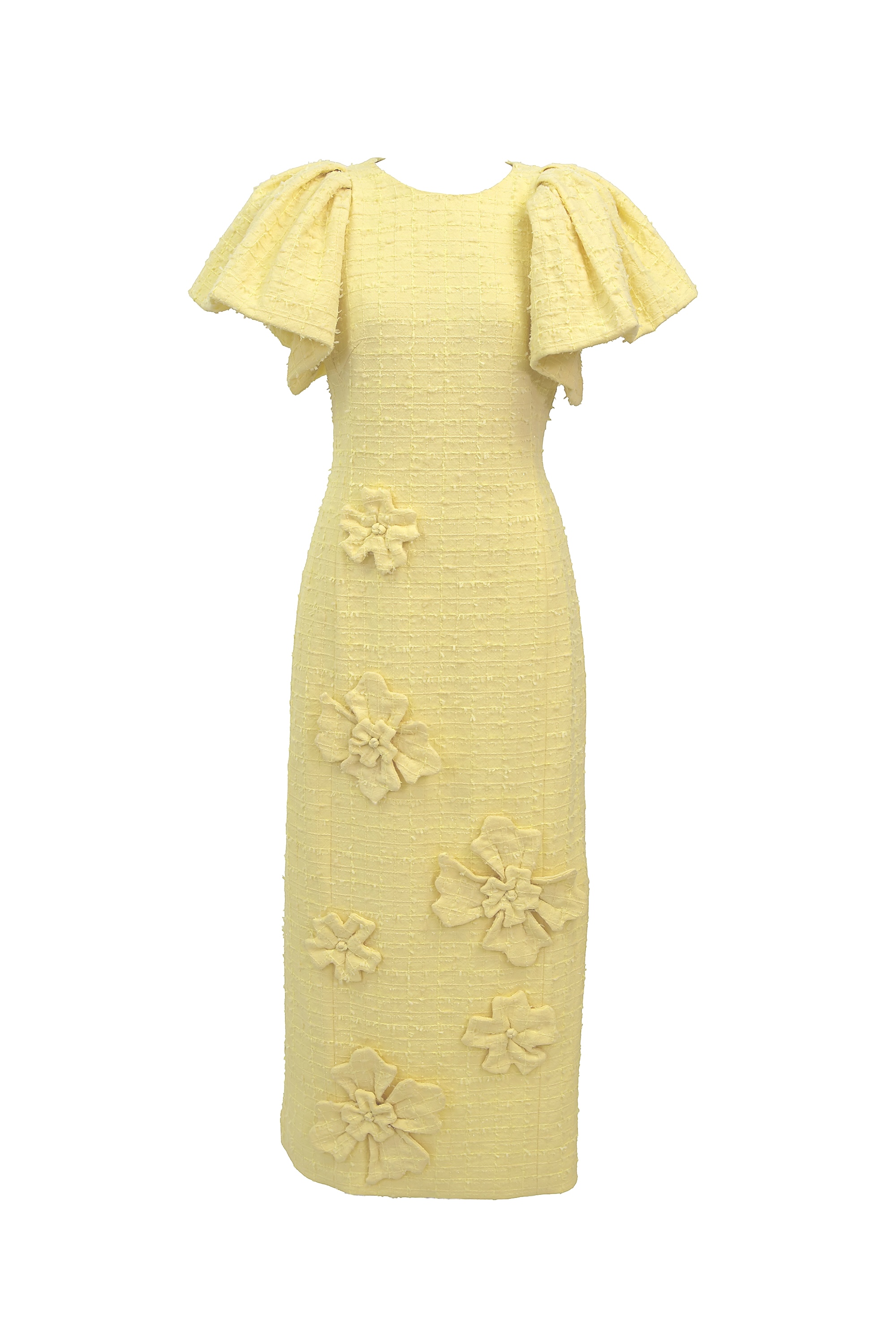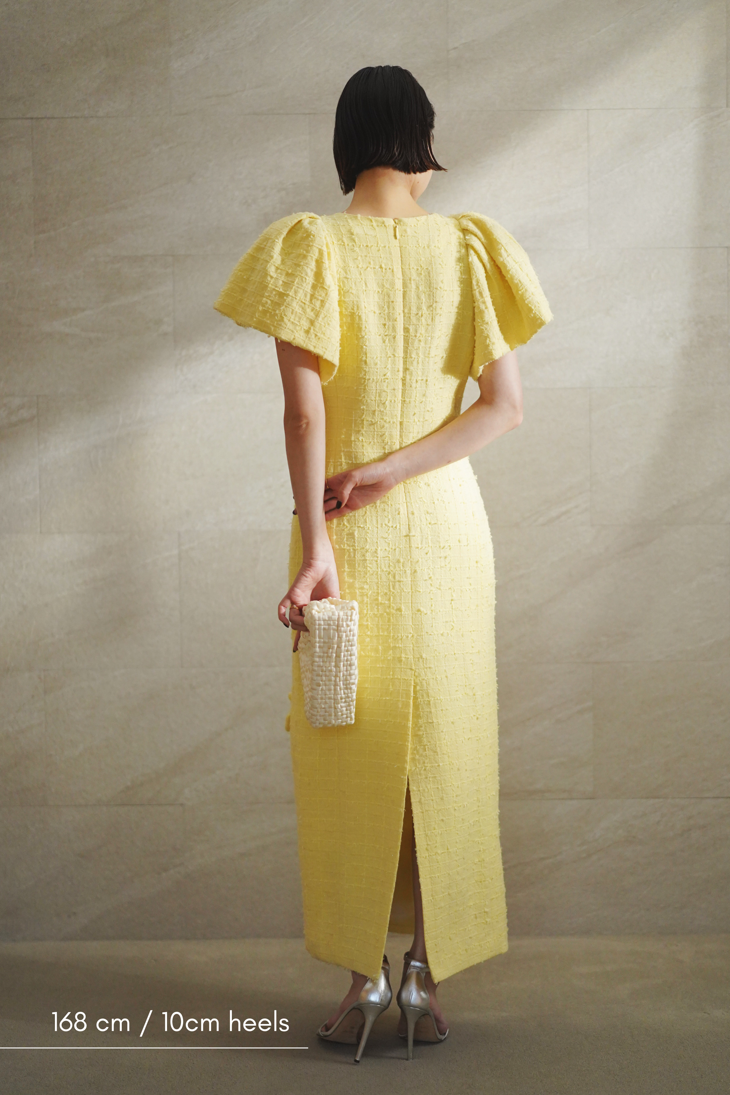 ペールイエローのツイード生地に、華やかなフローラルアップリケが映える一着。 少しフォーマルなランチ会から、華やかな写真を残したいイベントまで、幅広いシーンでお楽しみください。