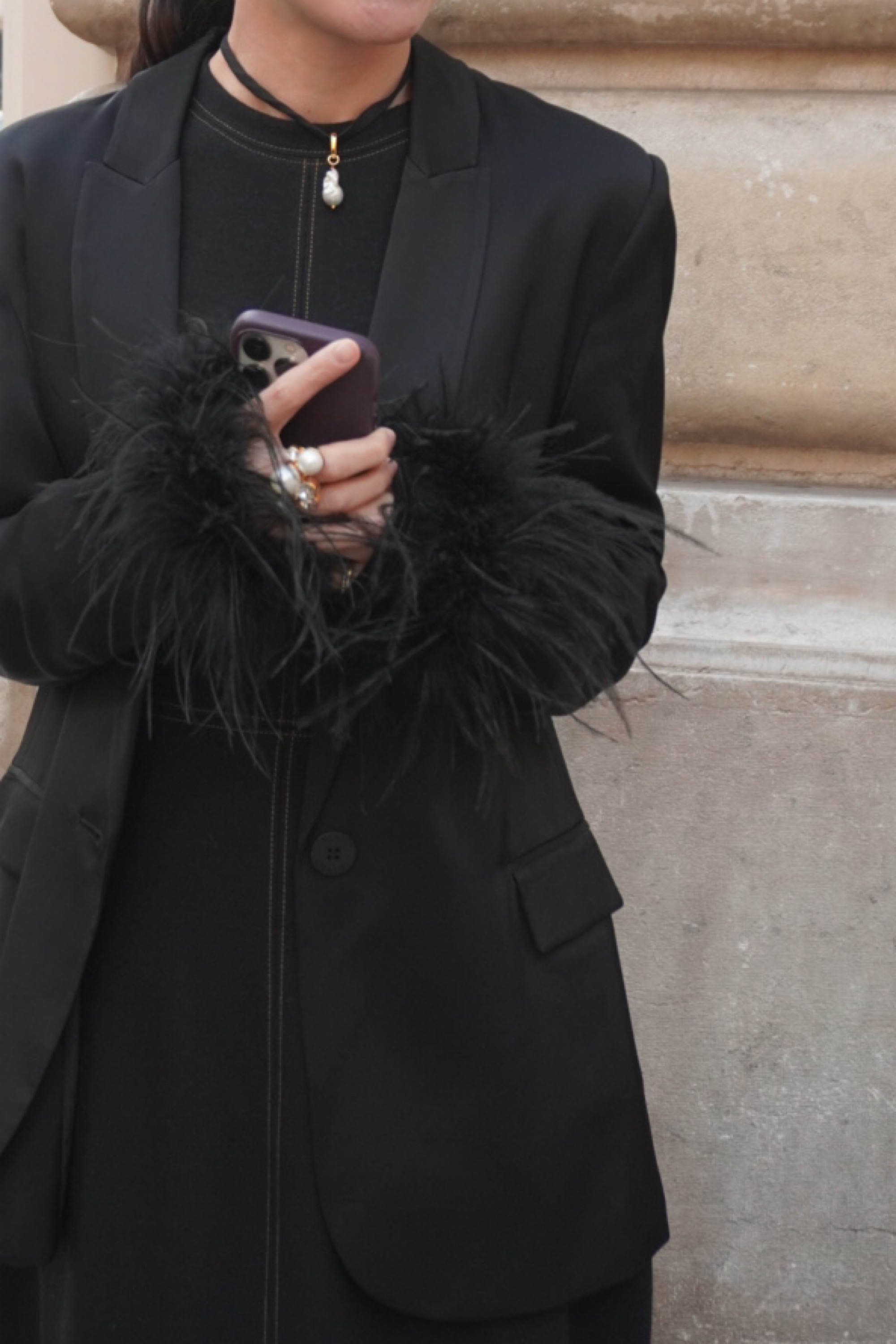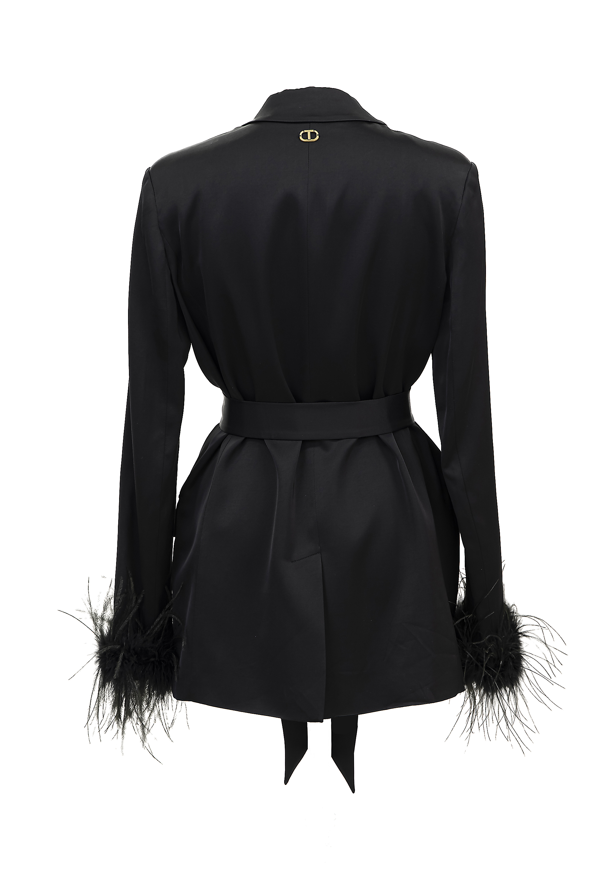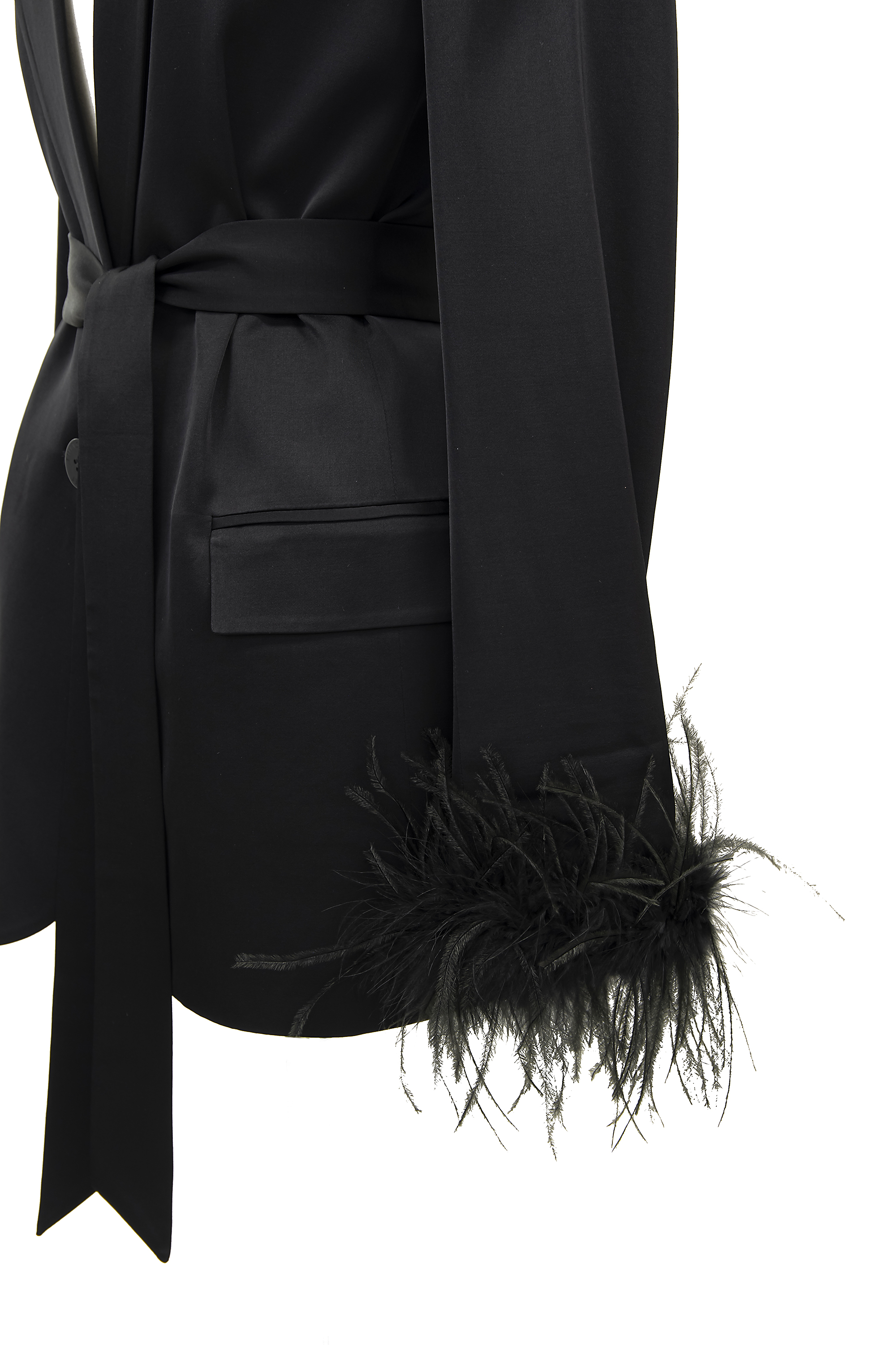 フェザートリム サテンジャケット-ブラック