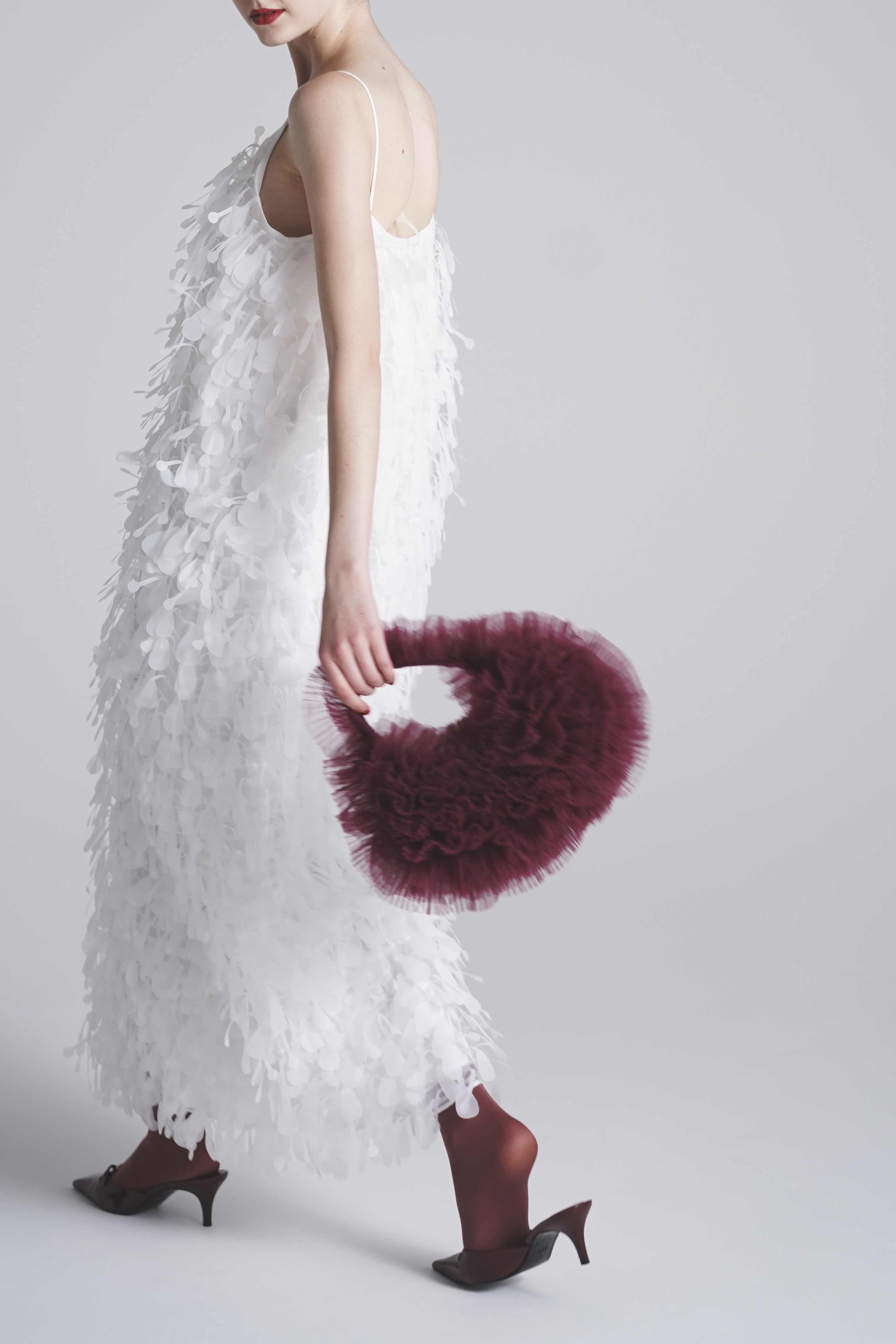 チュールのボリューム感が可愛いバック。取り入れるだけでコーディネートを一気に華やかにしてくれます。とっておきのアイテムで周りから一目置かれるコーディネートをしてみては。
